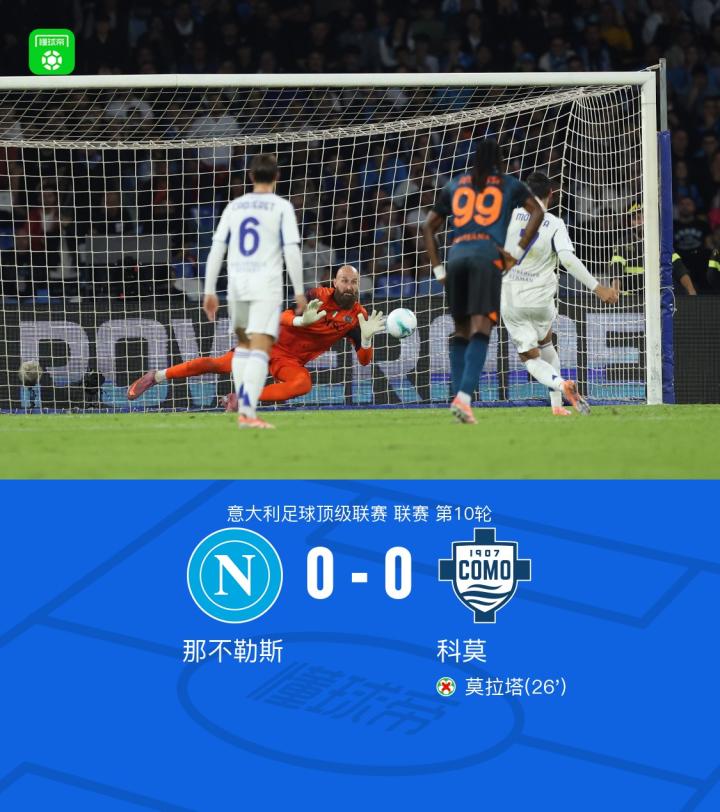 扫描下载懂球帝首页>动态> 那不勒斯0-0科莫,莫拉塔失点,米林科维奇连场扑点