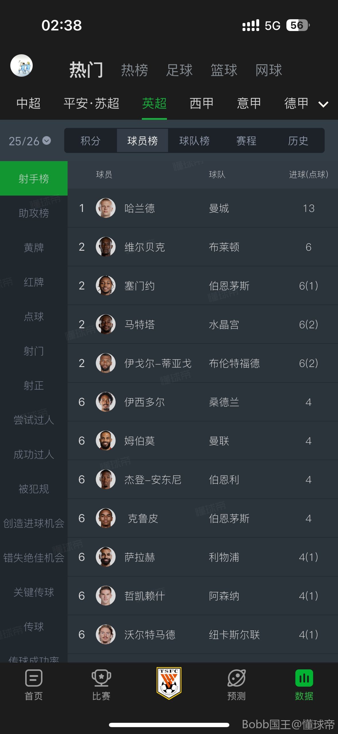 11-03 18:06本赛季英超的两支极致球队!曼城射手榜:哈兰德(1...