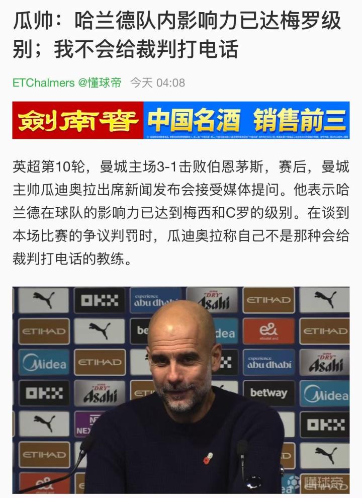 11-03 17:20邮报:瓜迪奥拉曾向朋友抱怨足球越来越依赖数据而非即兴发挥