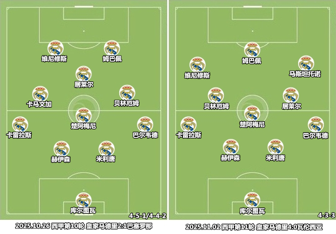 (图)马斯坦托诺受伤,皇马的双战术体系迷雾消散,阿隆索大概率将沿用国家德比时的442阵型。
