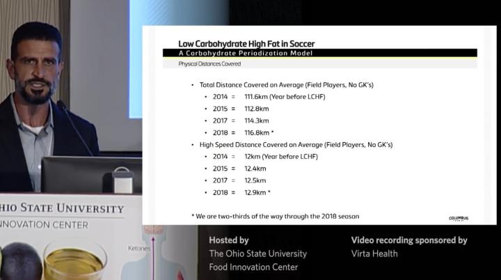 四年的实验成果显著。截至2018年,球队单场跑动距离从111.6公里提升至116.8公里,队员因受伤而缺席比赛的占比从11%下降至4.5%。球员的恢复水平也得以大幅度提升,赛后恢复期的肌肉酸痛指数从6.5下降至4.4,数据表明球员体内的炎症指数大大降低。一切数据都指向一个结论,哥伦布机员的球员们在不吃碳水,增加脂肪摄入量之后,运动能力越来越强。适应低碳后,这些运动员吃的碳水越来越少,甚至在比赛日也不吃碳水。