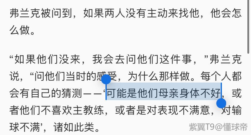 “如果他们没来,我会去问他们这件事,”弗兰克说,“问他们当时的感受,为什么那样做。每个人都会有自己的猜测——‘可能是他们母亲身体不好,或者他们不喜欢主教练,或者是对表现不满意,对输球不满’,诸如此类。