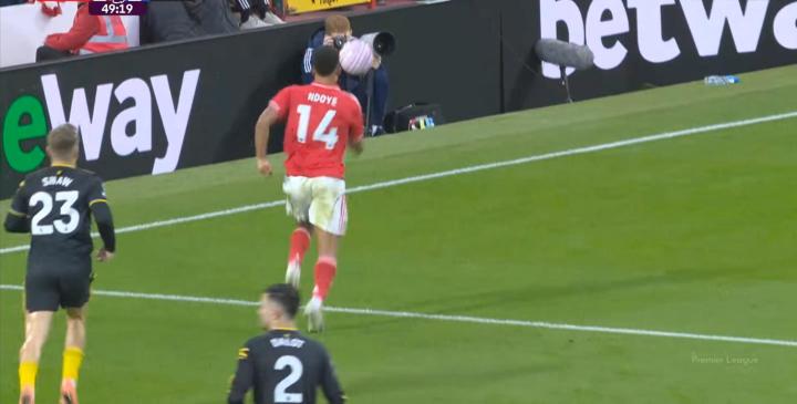 而到了下半场,诺丁汉森林在落后的时候全面施压,顶住谢什科和姆贝乌莫之际,右后卫萨沃纳前插,先是助攻了第一球,起脚的位置就在库尼亚身侧: