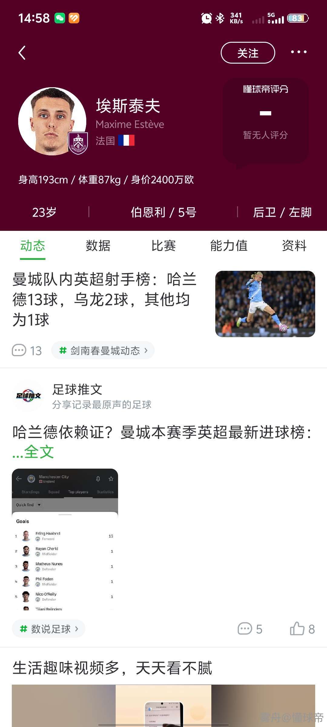 已经进行十轮了,曼城的第二射手还是艾斯泰夫