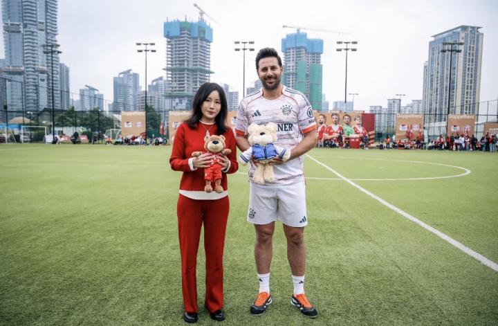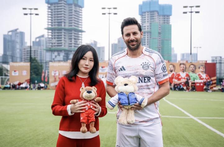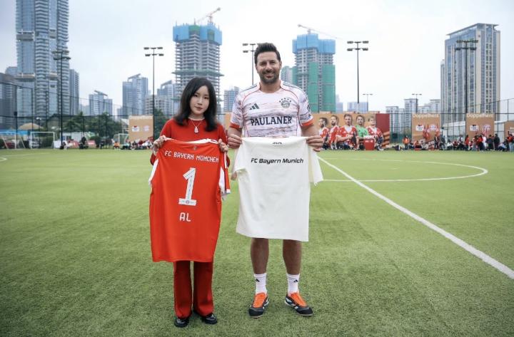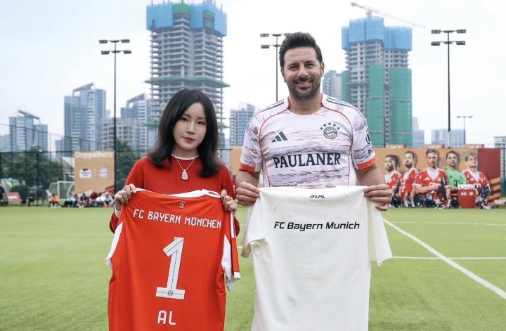 扫描下载懂球帝首页>动态> AL晒和拜仁跨界联动:老板菲菲和拜仁名宿皮萨罗交换队服