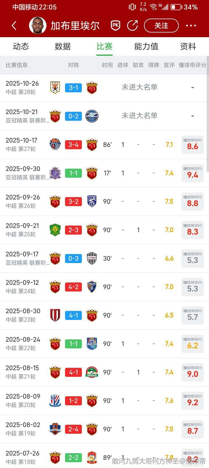 11-05 00:00在今晚的比赛中,徐新替补出场,达成了个人代表海港...