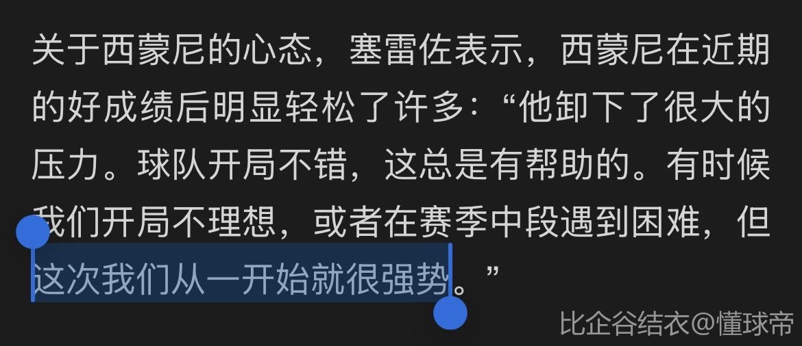 关于西蒙尼的心态,塞雷佐表示,西蒙尼在近期的好成绩后明显轻松了许多:“他卸下了很大的压力。球队开局不错,这总是有帮助的。有时候我们开局不理想,或者在赛季中段遇到困难,但这次我们从一开始就很强势。”