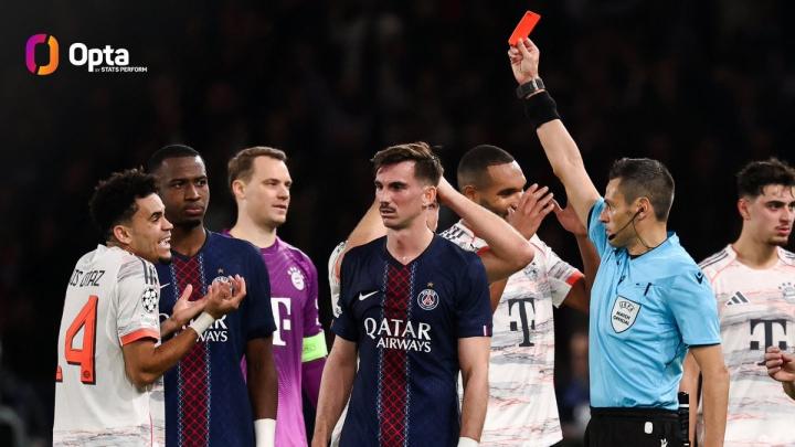 十人拜仁2-1巴黎豪取16连胜,迪亚斯双响+染红,登贝莱伤退