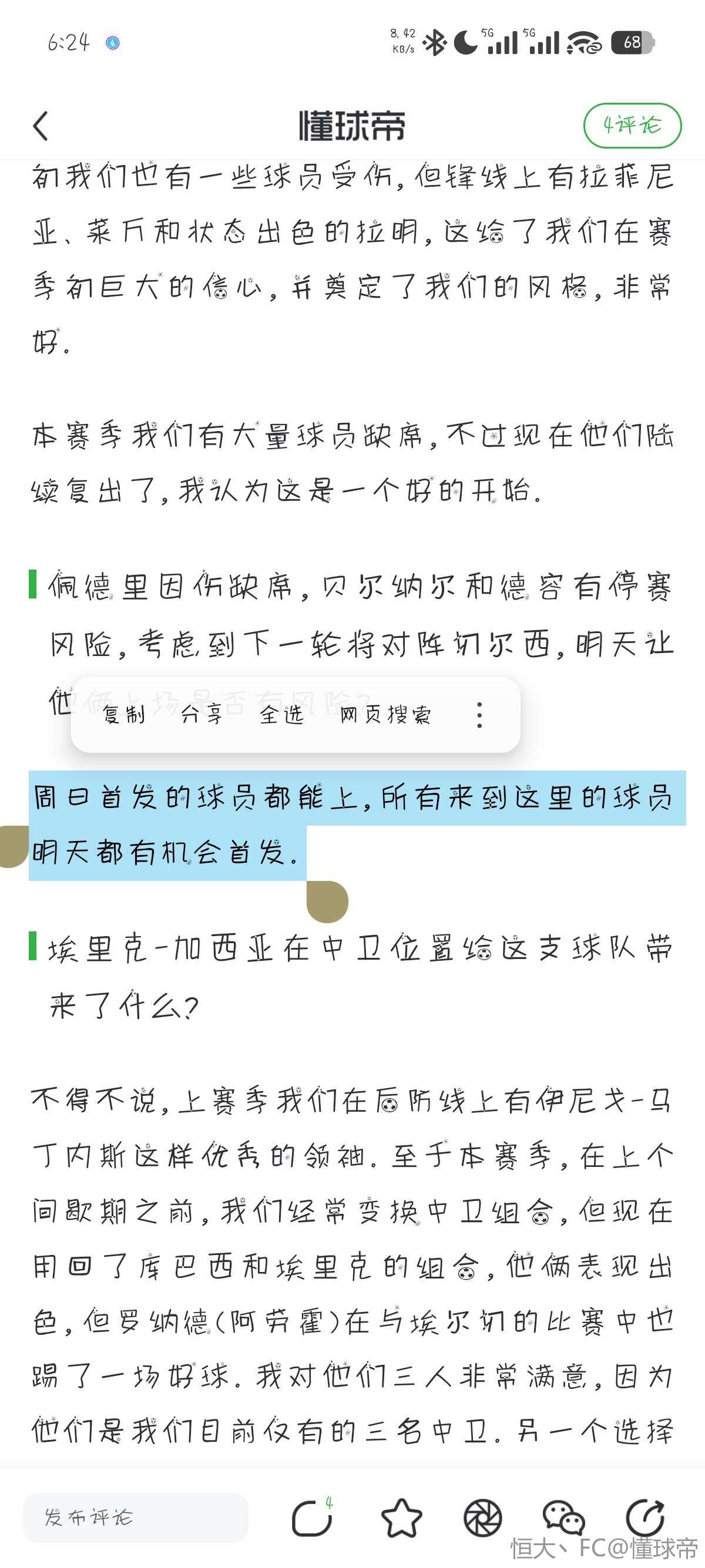 但是,这不是我的问题。他对我们很重要,上一场赛后我说过了,他把各方面处理得很好,他非常自律:认真训练、接受治疗……他必须妥善处理这次伤病,他做得非常好。你没法说他的恢复期到今天就结束了,或是再有一周就行,而且我们和队医团队也需要为拉明(亚马尔)投入大量精力。我只能说,拉明状态很好,能上的话,他会上的。