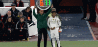 第32分钟,楚阿梅尼因手球被判定位球,主裁判观看VAR后取消定位球