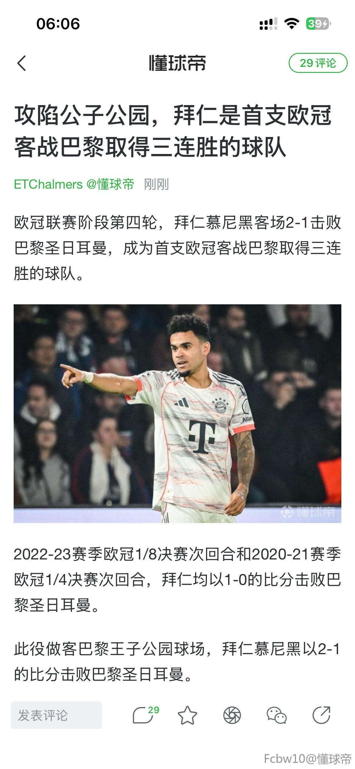 扫描下载懂球帝首页>动态> 攻陷王子公园,拜仁是首支欧冠客战巴黎取得三连胜的球队