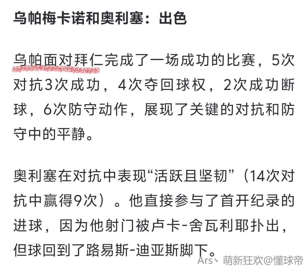 昨天迪亚斯下场之后奥利赛几乎成了唯一的反击点,然后防守的时候还有和莱默尔一起防kk和门德斯,整体来说还是挺坐牢的,但好歹是守住了,于帕真的很关键,他和塔很多次封堵和解围,被围攻心态也很冷静,真的战神
