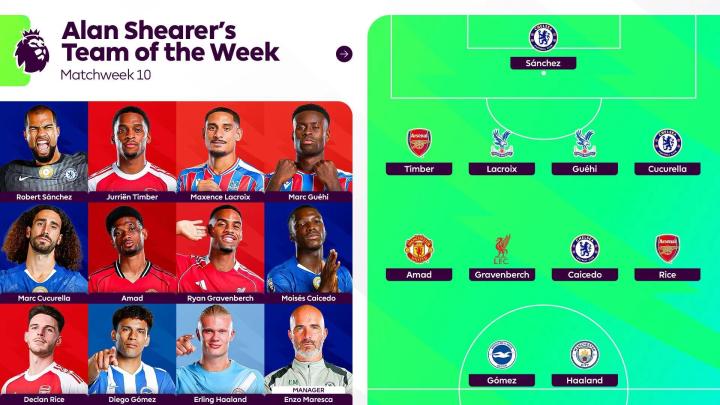 扫描下载懂球帝首页>动态> 希勒评英超第10轮最佳阵:哈兰德、切尔西3人、阿森纳2人在列