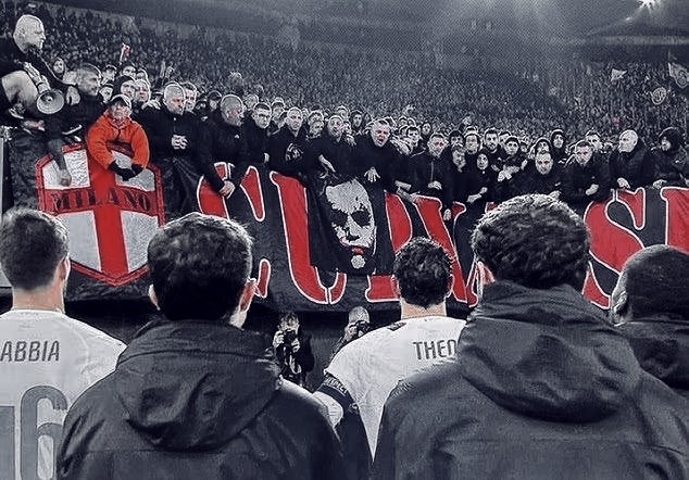 次年5月,米兰客负保级球队斯佩齐亚,球员们与主帅皮奥利在赛后来到了远征军所在的看台下方,听南看台的球迷领袖在看台上喊话。