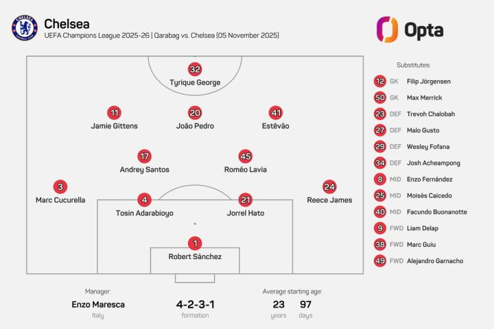 扫描下载懂球帝首页>动态> 23岁97天,切尔西排出英格兰球队欧冠客场第二年轻的首发