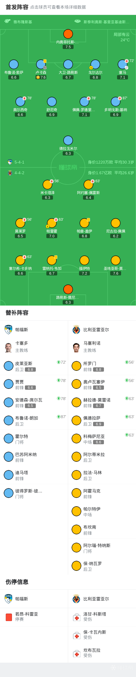 11-06 06:20帕福斯 vs 比利亚雷亚尔 比赛动态