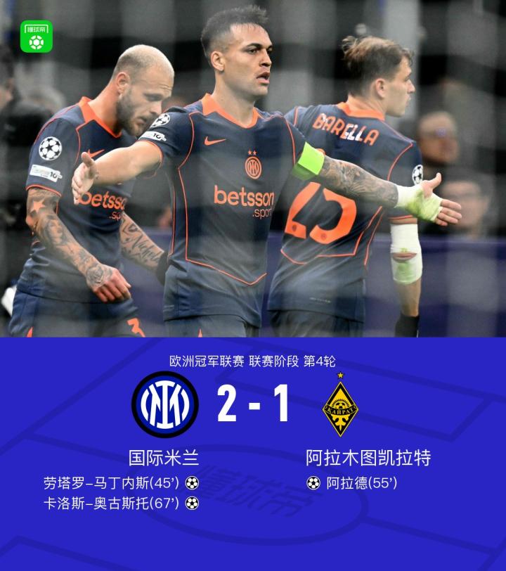 11-06 06:43国米被凯拉特破门,本赛季欧冠已经只剩阿森纳没有丢球