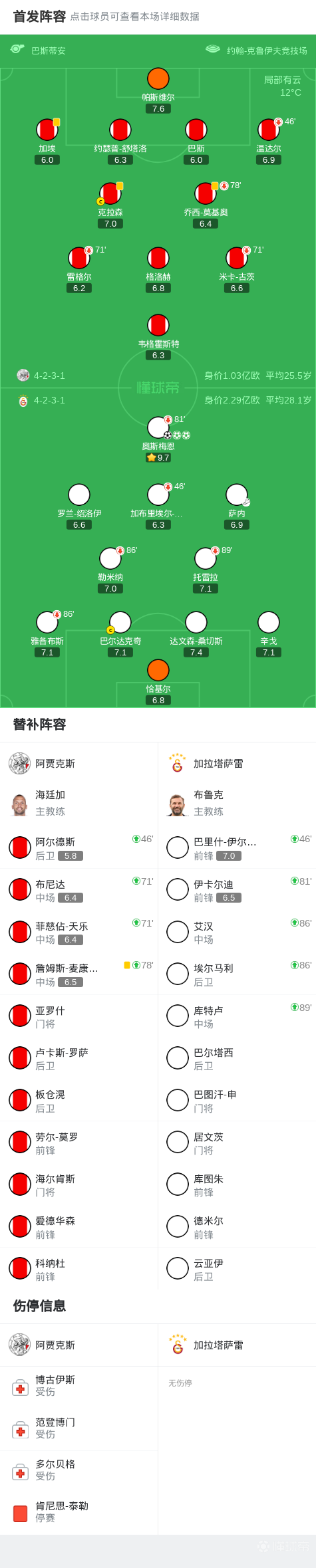 视频集锦:阿贾克斯0-3加拉塔萨雷