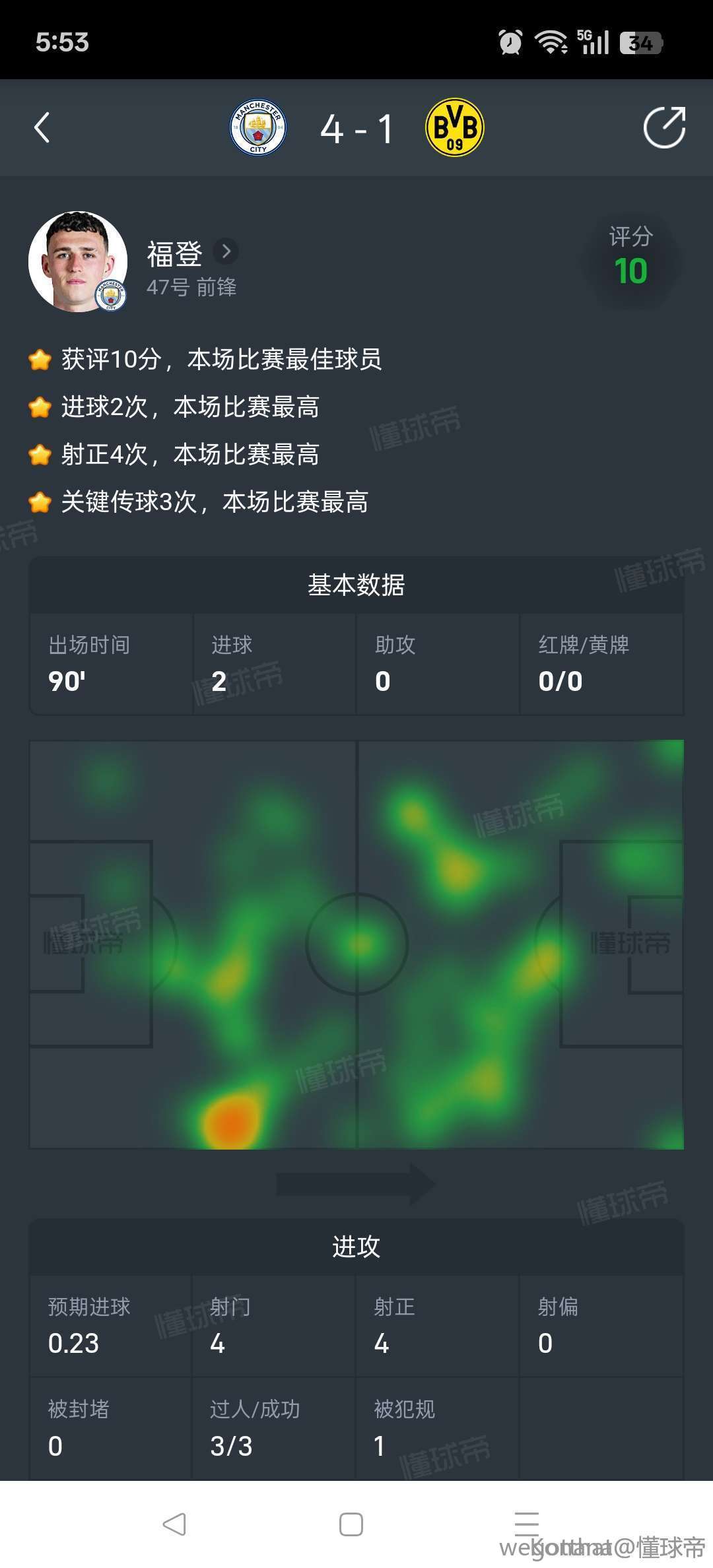 扫描下载懂球帝首页>动态> 梅开二度,福登当选曼城vs多特全场最佳球员