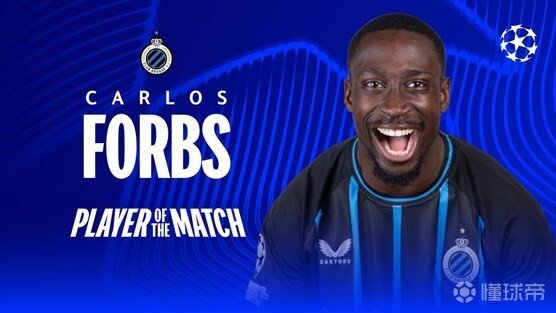 扫描下载懂球帝首页>动态> 战巴萨贡献2球1助,布鲁日前锋福布斯当选欧冠全场最佳球员