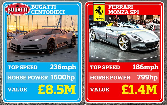 最贵的车是一辆限量版布加迪Centodieci,价值850万英镑,据信他是全球仅有的10位拥有这款超级跑车的人之一。