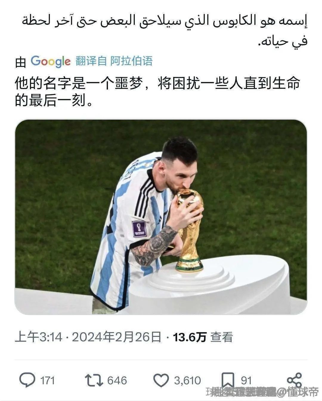 但是我觉得,是潘帕斯雄鹰戴上了沉重的镣铐,三十多年不得解脱,梅西不需要世界杯来证明自己,其他球员也不需要世界杯来证明自己,但是那个濒临破产的阿根廷需要世界杯来提振士气向世界展示自己,那些倾家荡产来看世界杯的球迷需要世界杯来安抚自己的情绪和现实的压力