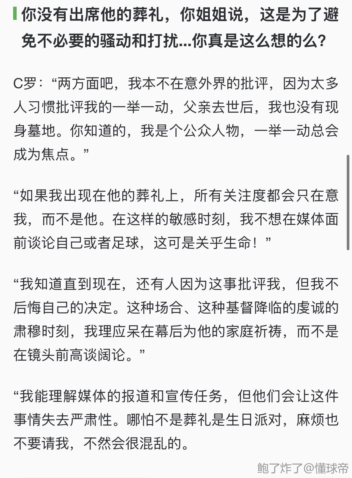 有些人还不如直接黑,打着“欧洲人有良知的旗号”说C罗去了球迷也会控制好情绪不会影响葬礼,真实情况他们却根本看不见或装作看不见。