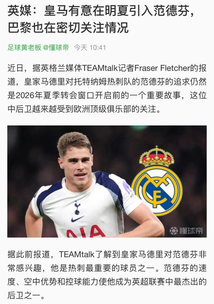 扫描下载懂球帝首页>动态> 懂球号> 皇马又开始发疯了是吧,一个蹲坑的买范德芬干什么?