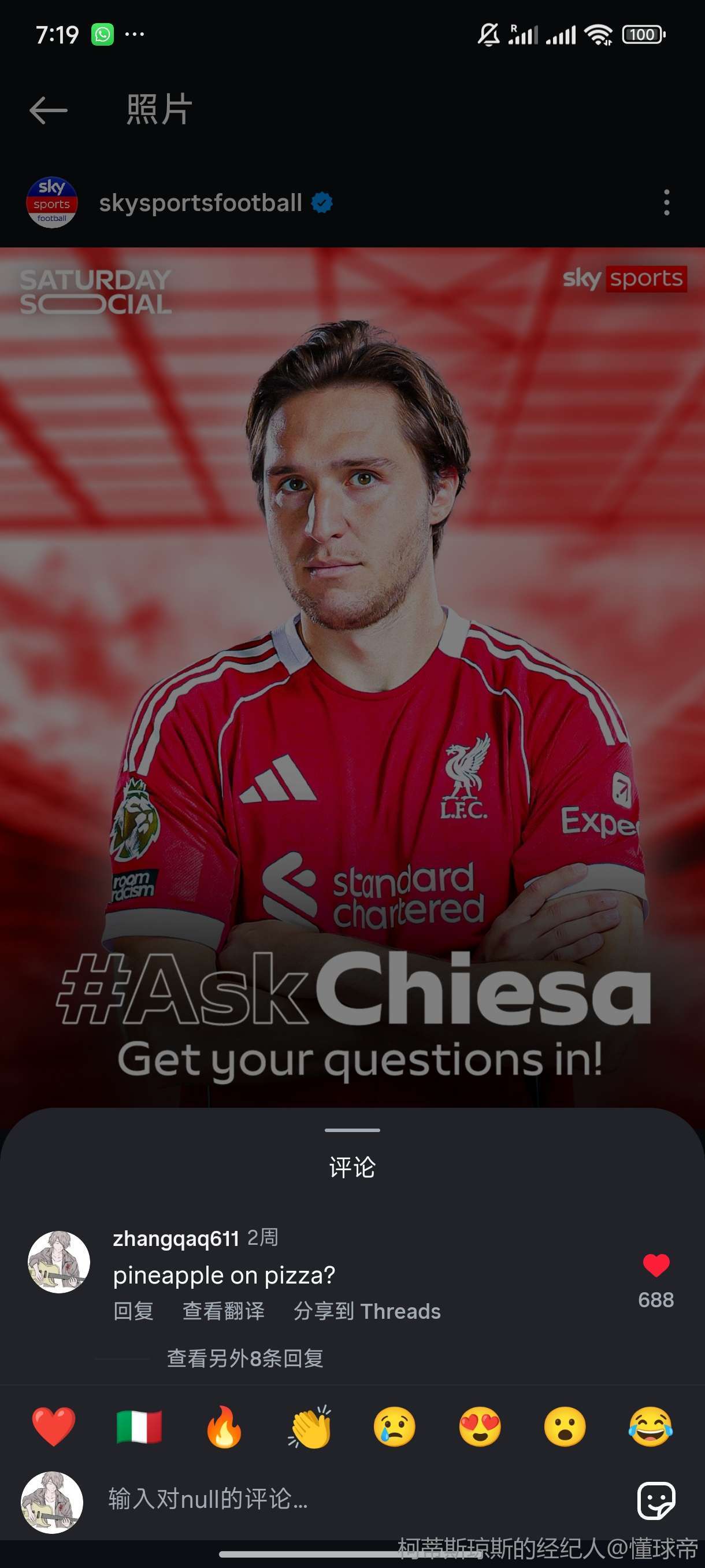 利物浦前锋费代里科-基耶萨接受了来自天空体育的专访,天空体育方面向网友征集了许多问题来向这名意大利前锋提问,本文为专访的上半部分。