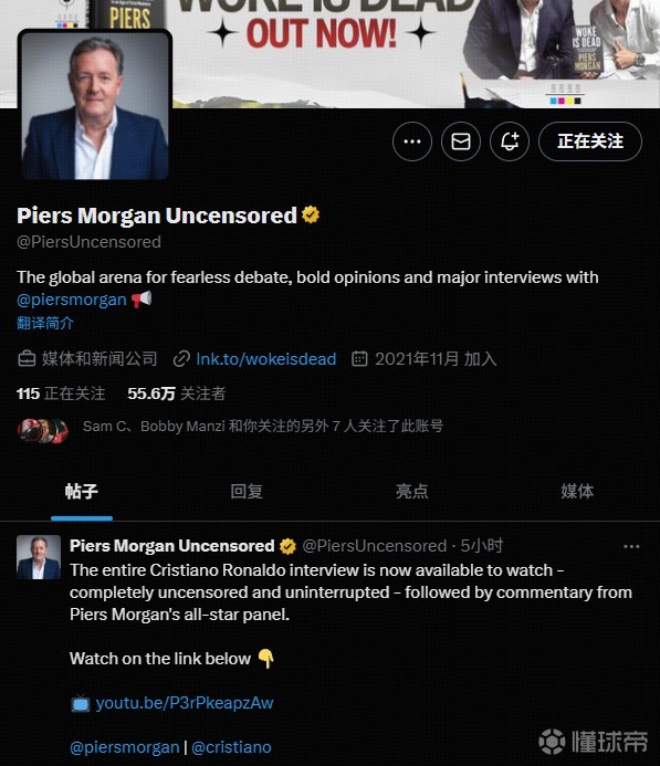 扫描下载懂球帝首页>动态> 啊这…C罗专访“加时赛”实际是在英国Channel5频道播出已发布内容