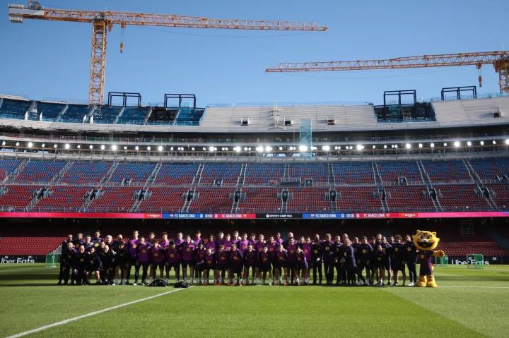 11-08 10:15世体:巴萨球员首次踏上新诺坎普的草坪,进行训练并合影留念