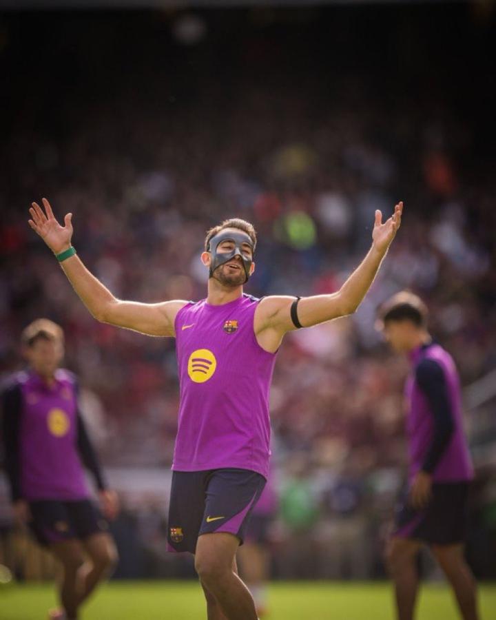 世体:巴萨球员首次踏上新诺坎普的草坪,进行训练并合影留念