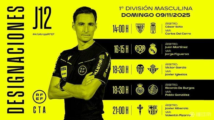 这个胡安就是去年皇马客战巴列卡诺的主裁,纯盲人裁判。对面禁区内踢倒维尼装瞎,明显的拉人犯规维尼修斯抗议反手给维尼一张黄牌。