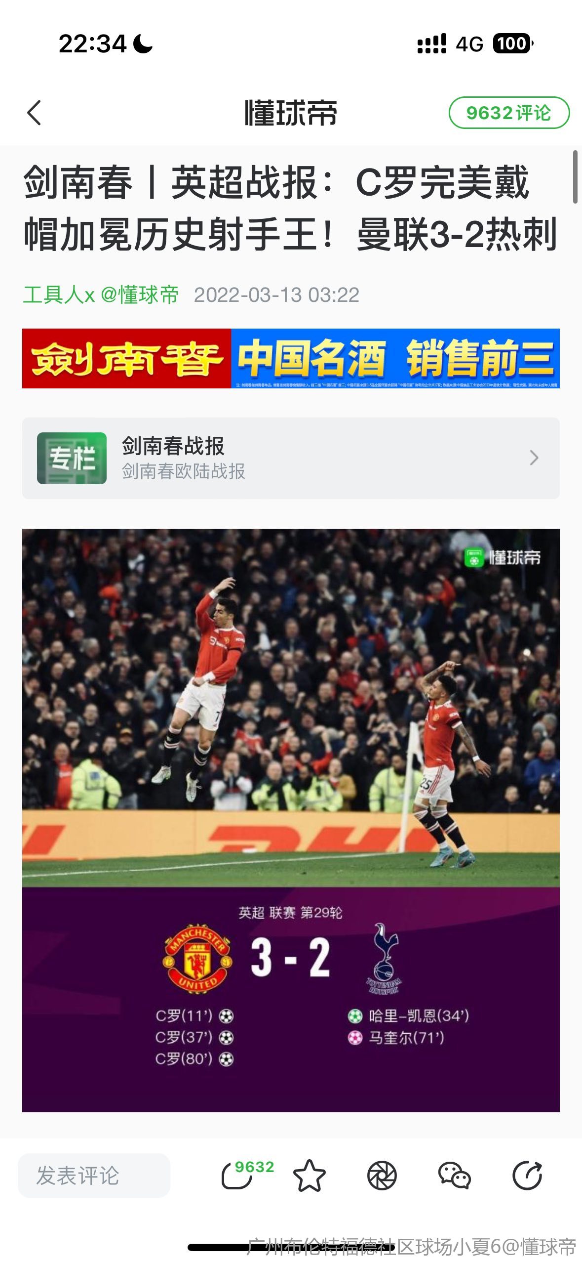 我还说上次客场击败热刺C罗帽子戏法呢