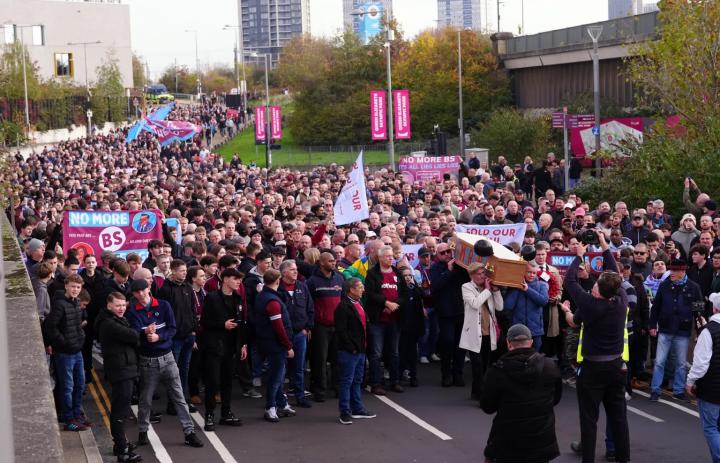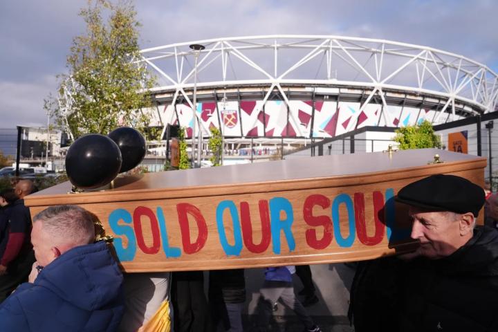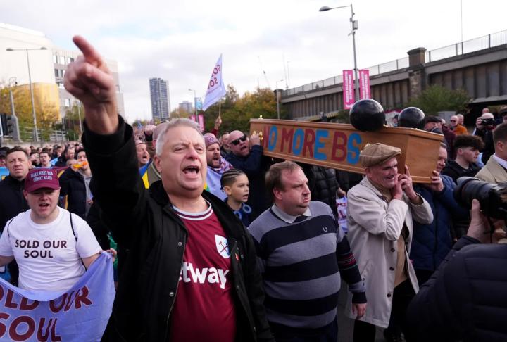 扫描下载懂球帝首页>动态> 太阳报:西汉姆球迷抬着棺材游行,抗议俱乐部管理层