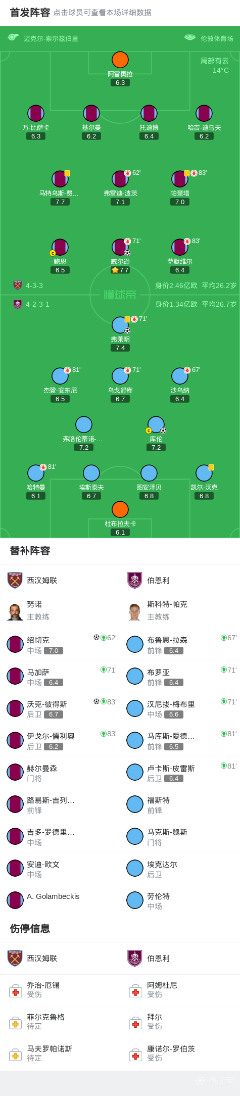 11-08 22:58⚒首发公布 | 西汉姆联 vs 伯恩利 费尔南...