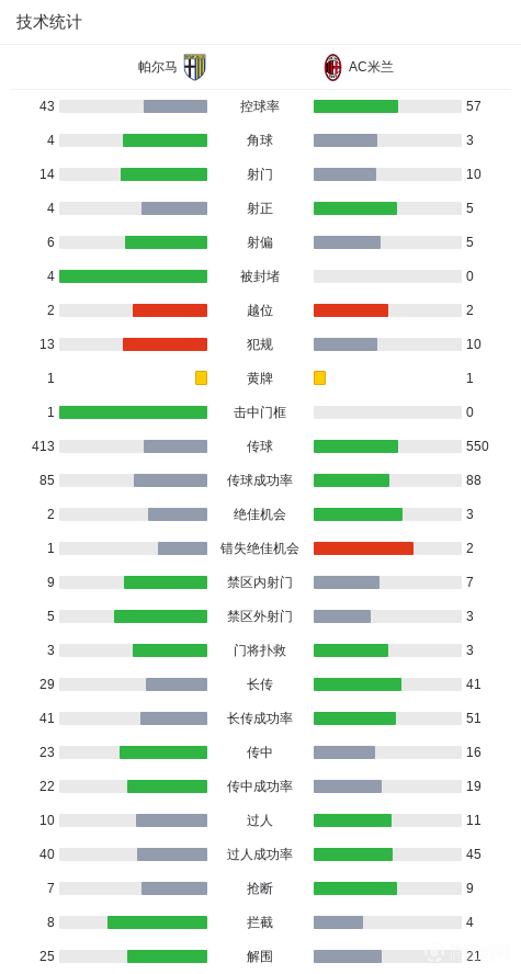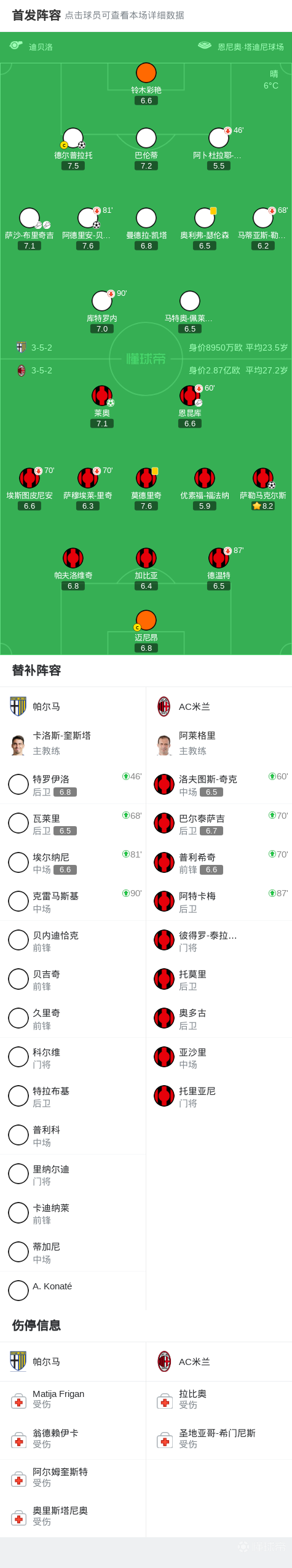 头槌助帕尔马连追两球逼平米兰,德尔普拉托当选全场最佳球员