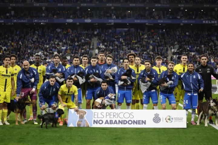 在对阵比利亚雷亚尔的比赛前,西班牙人在开场哨吹响之前踏上球场时,排出了一套非常特殊的阵容:阿尔巴、布莱克、博托、门塔、努斯卡、皮帕、皮斯托、塔卡、洛博、奥索和蒂格雷。这是11只正在寻找家园的狗狗,西班牙人俱乐部和球员们都在全力以赴帮助它们找到归宿。事实上,在上赛季通过同样的倡议活动中,曾有一只踏上草坪的狗狗被一线队的某位球员领养。