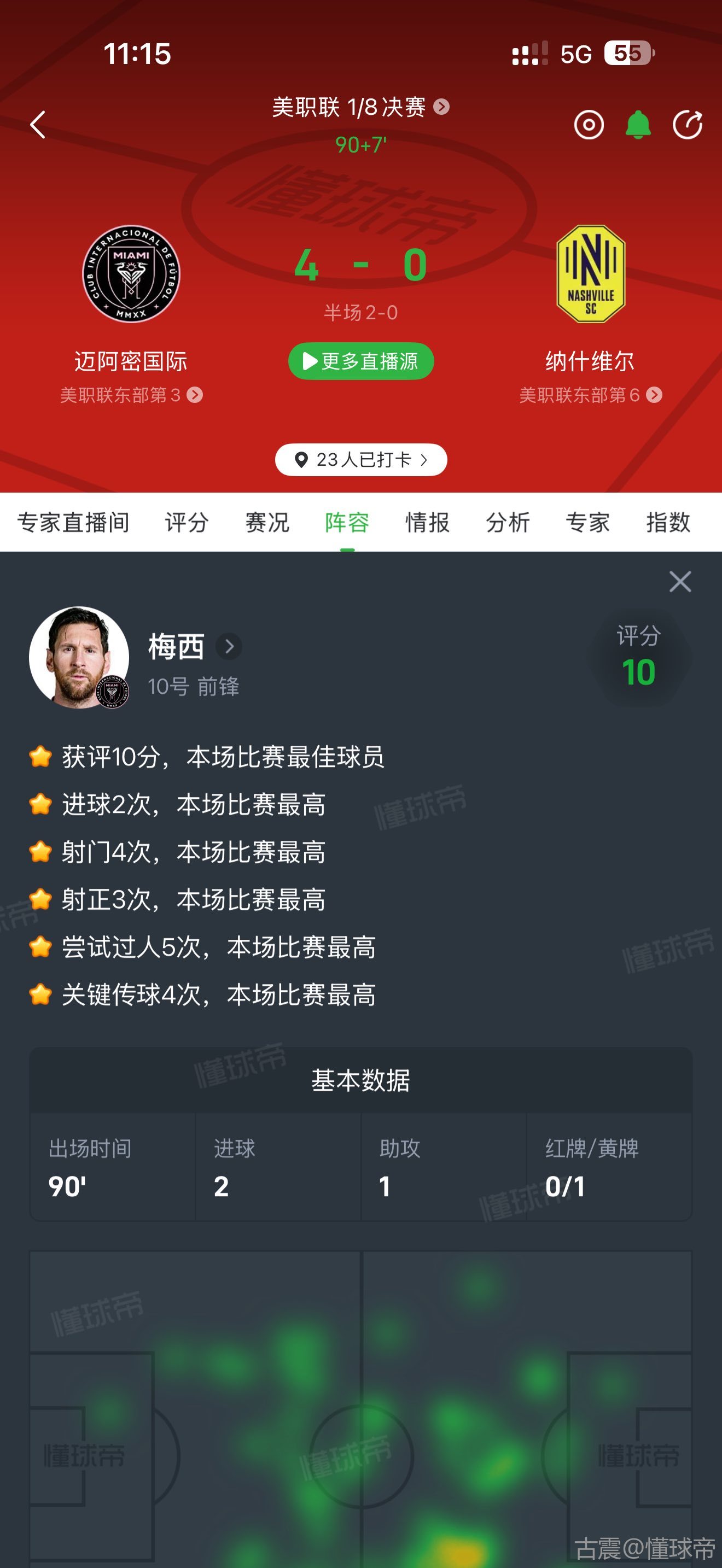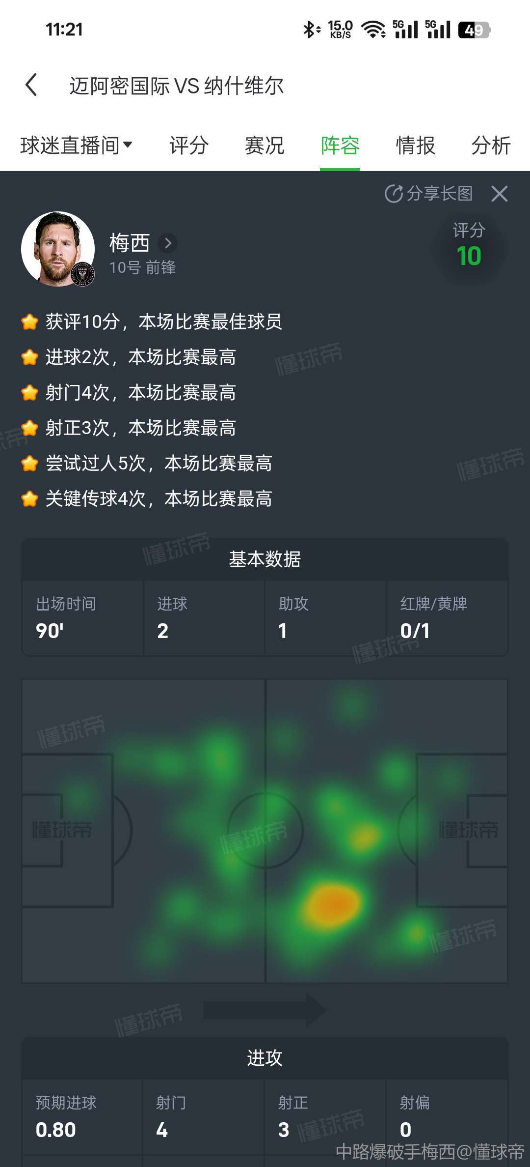 本赛季一共5次且本次是连续第4次面对纳什维尔,梅西收获10球2助共制造12粒进球!要知道在梅西来之前迈阿密甚至输过纳什维尔1-5!