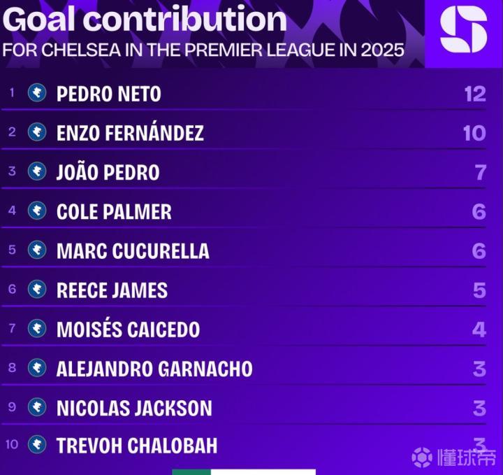 扫描下载懂球帝首页>动态> 佩德罗-内托2025年英超进球5+、助攻5+,是蓝军队内唯一一人