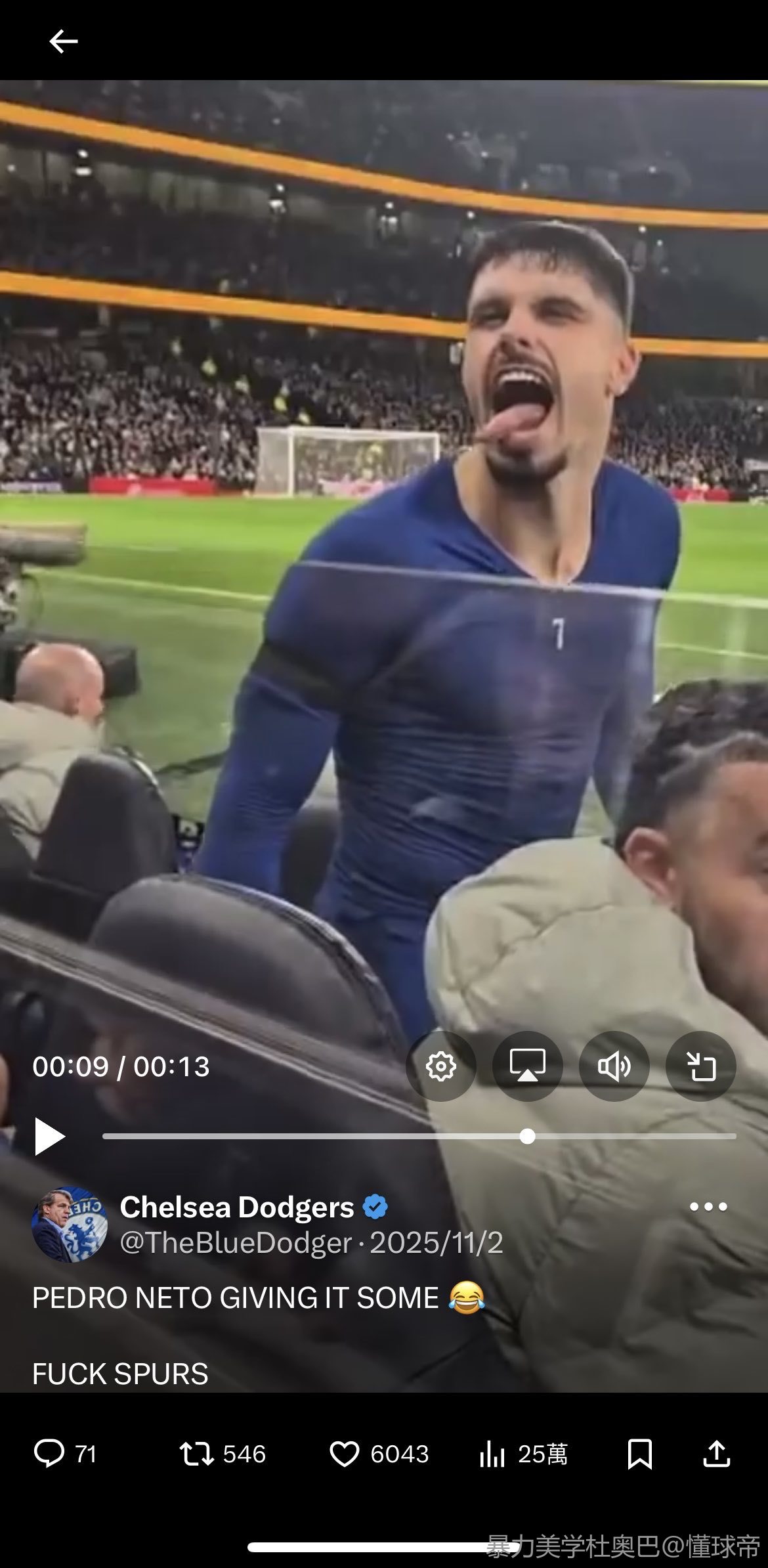 11-09 13:32球迷视角欣赏下古斯托和佩德罗的进球,切尔西轻松战...