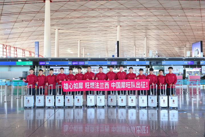 出征仪式上,球员们精神饱满,犀旺功能饮料品牌代表王冬将“中国犀旺队”队旗授予球队队长。教练员崔鹏在出征仪式上鼓励球员们,展现中国青年风采,虚心学习,拼搏进取,希望大家在法国刻苦训练,多与当地球员教练交流,全面提升自身技战术水平,积累宝贵经验。