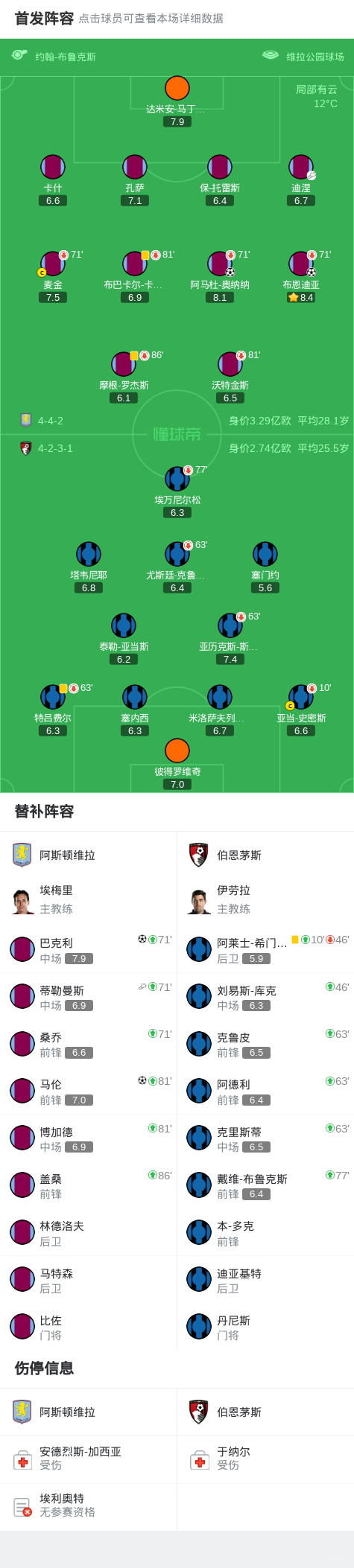半场丢完那两球,球员明显的精气神都没了,换人之后攻势又起了一点,但塞门约罚丢了那粒点球,之后球员就摆烂了。其实要是上半场沃特金斯运气好点,这场比赛早就被打爆了。