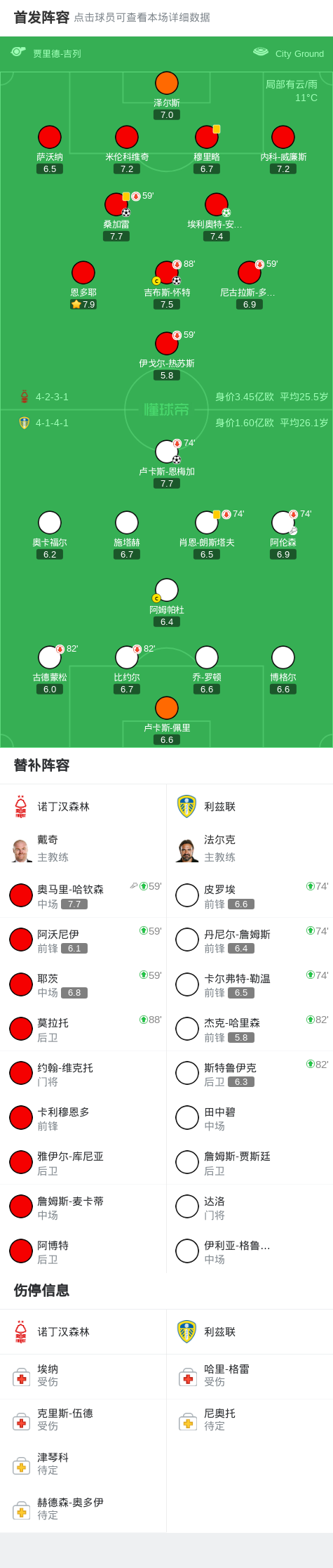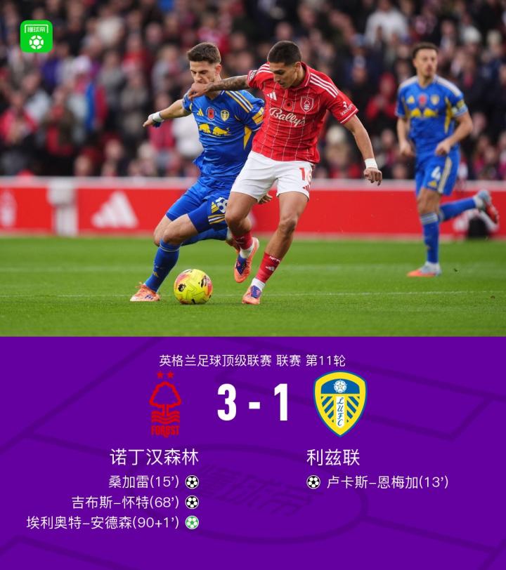 11-10 00:15诺丁汉森林 vs 利兹联 比赛动态
