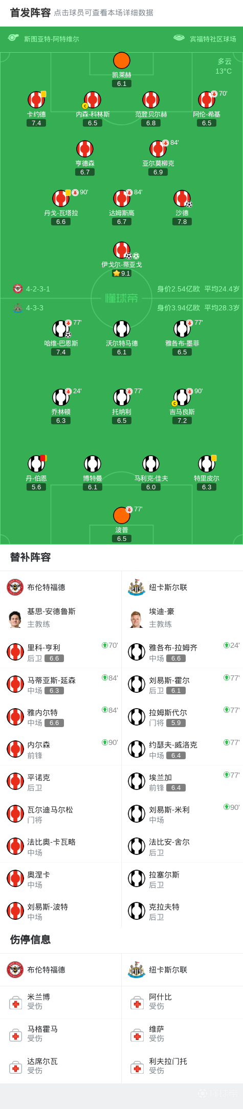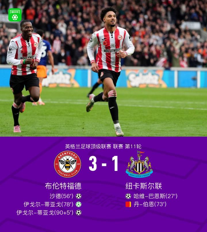 11-10 00:18布伦特福德 vs 纽卡斯尔联 比赛动态