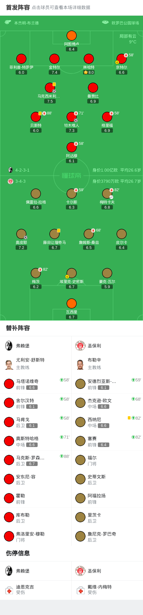 第50分钟,弗赖堡球员马克西米利安-埃格施泰因打入一球。