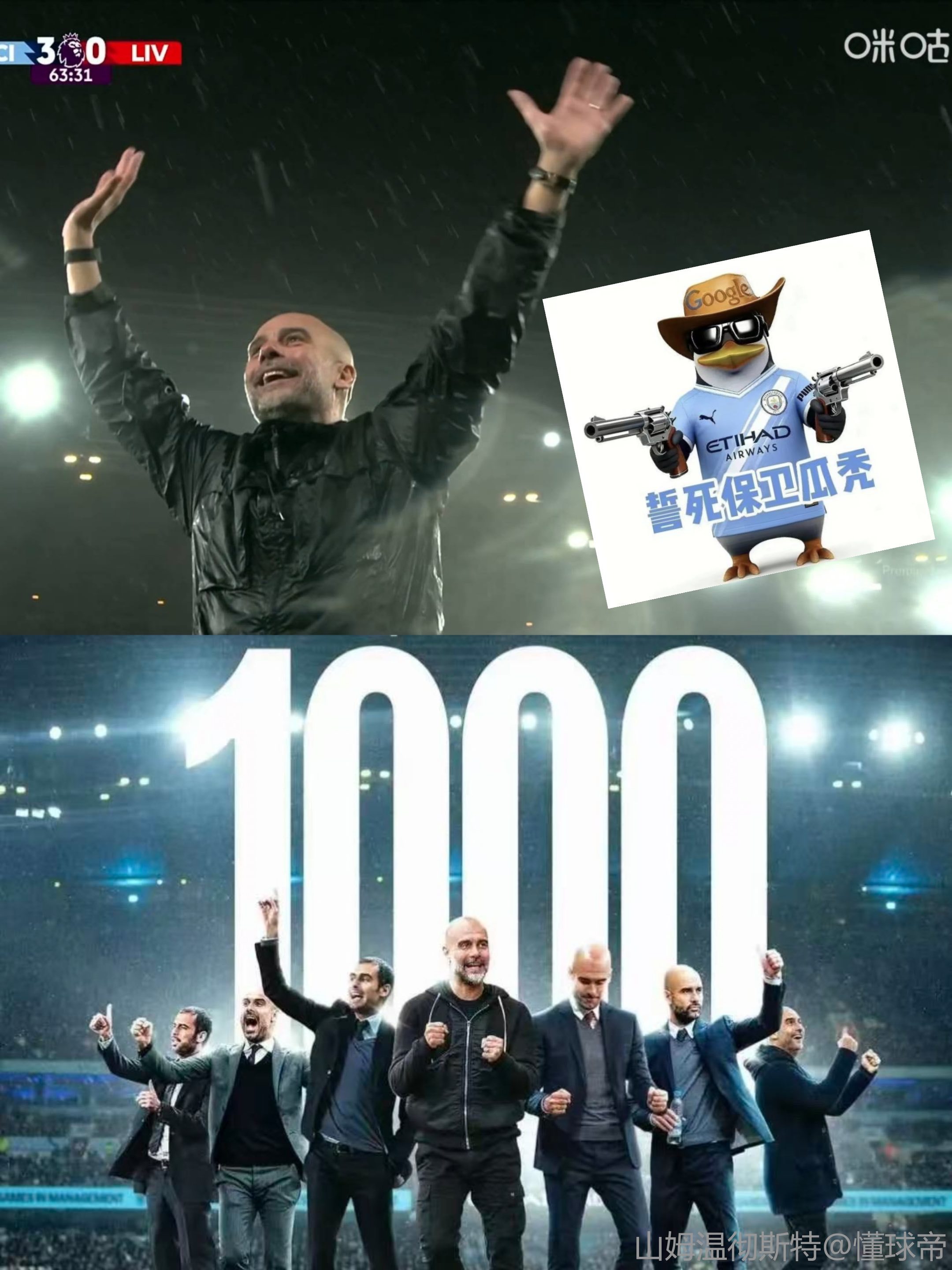 在曼城执教场次已经超过巴萨➕拜仁100场