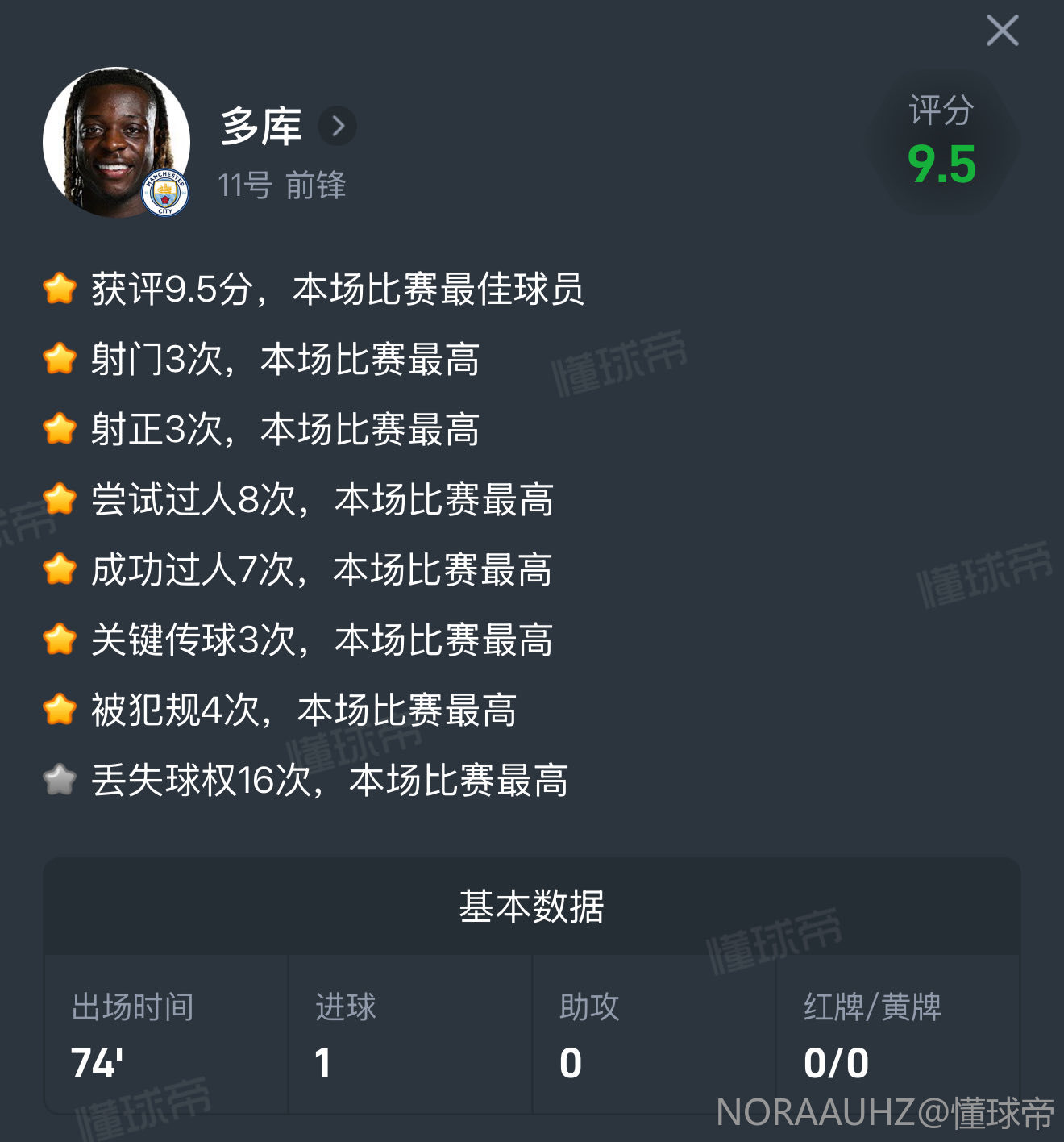 下雨天的多库太猛了,像泥鳅似的,主宰了这场比赛