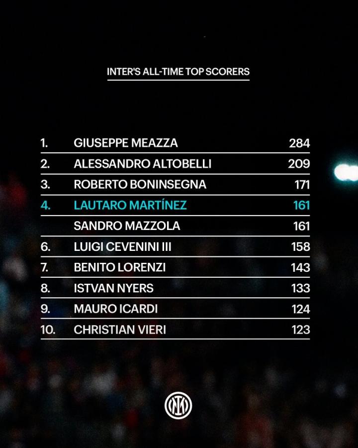 扫描下载懂球帝首页>动态> 161球,劳塔罗升至国米队史射手榜并列第四