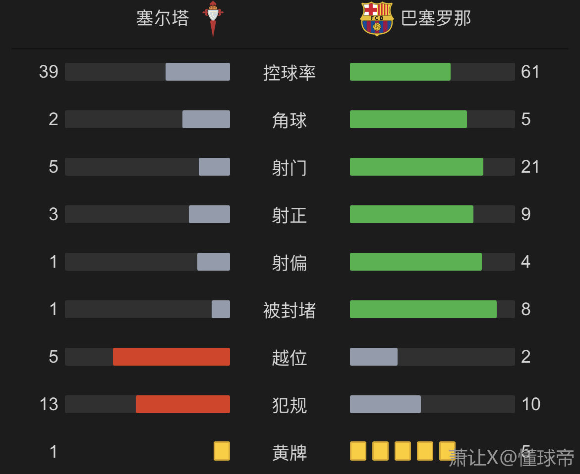 第43分钟,再次扳平!胡特格拉助攻伊格莱西亚斯远射得手,塞尔塔2-2巴萨